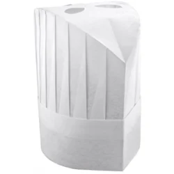 Καπέλο Σεφ Μίας Χρήσης Λευκό προσφέρει επαγγελματική εμφάνιση και υψηλό επίπεδο υγιεινής σε χώρους εστίασης και παρασκευής τροφίμων. Κατασκευασμένο από ελαφρύ και αναπνεύσιμο non-woven υλικό, εξασφαλίζει άνετη εφαρμογή και αποτελεσματική συγκράτηση των μαλλιών κατά τη διάρκεια της εργασίας.