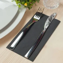 Χαρτοπετσέτα Πολυτελείας 40×40 cm 2 φύλλων σε μαύρο χρώμα αποτελεί κορυφαία επιλογή για χώρους εστίασης που επιθυμούν να προσφέρουν κομψή και ποιοτική παρουσίαση τραπεζιού. Η διπλωμένη μορφή της προσδίδει άμεσα επαγγελματικό αποτέλεσμα, ενώ η απαλή υφή και η αυξημένη αντοχή εξασφαλίζουν άνεση και πρακτικότητα στη χρήση.